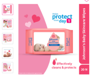 Johnson’s Baby Skincare Wipes(20N)  4.5/5ratings & 347 reviews MRP:85