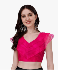 V Neck Orgenza Three Layer Ruffle Sleeve Frill Readymade Saree Blouse