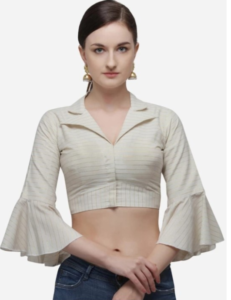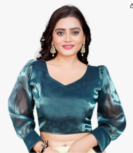 Organza Silk Puffy Full Sleeve Blouse Woven Long Balloon Sleeve Saree Blouse -Free Size Blouse