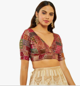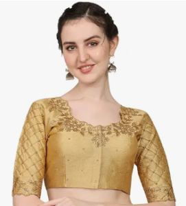 Pujia Mills women's embroidery handwork, rough cut work stone work readymade blouse