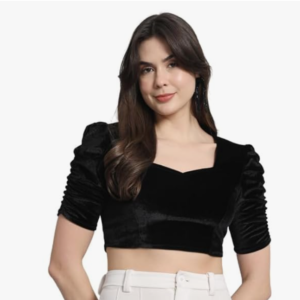 Chicava Readymade Party Blouse for Women | Shiny Velvet Puff Sleeves Stylish Outfit