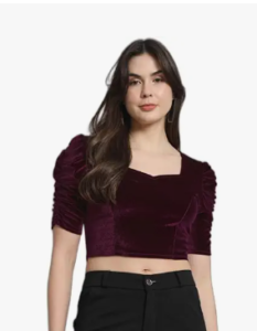 Vaararo Velvet Blouse Tops for Women | Party Puff Sleeves Readymade Outfit